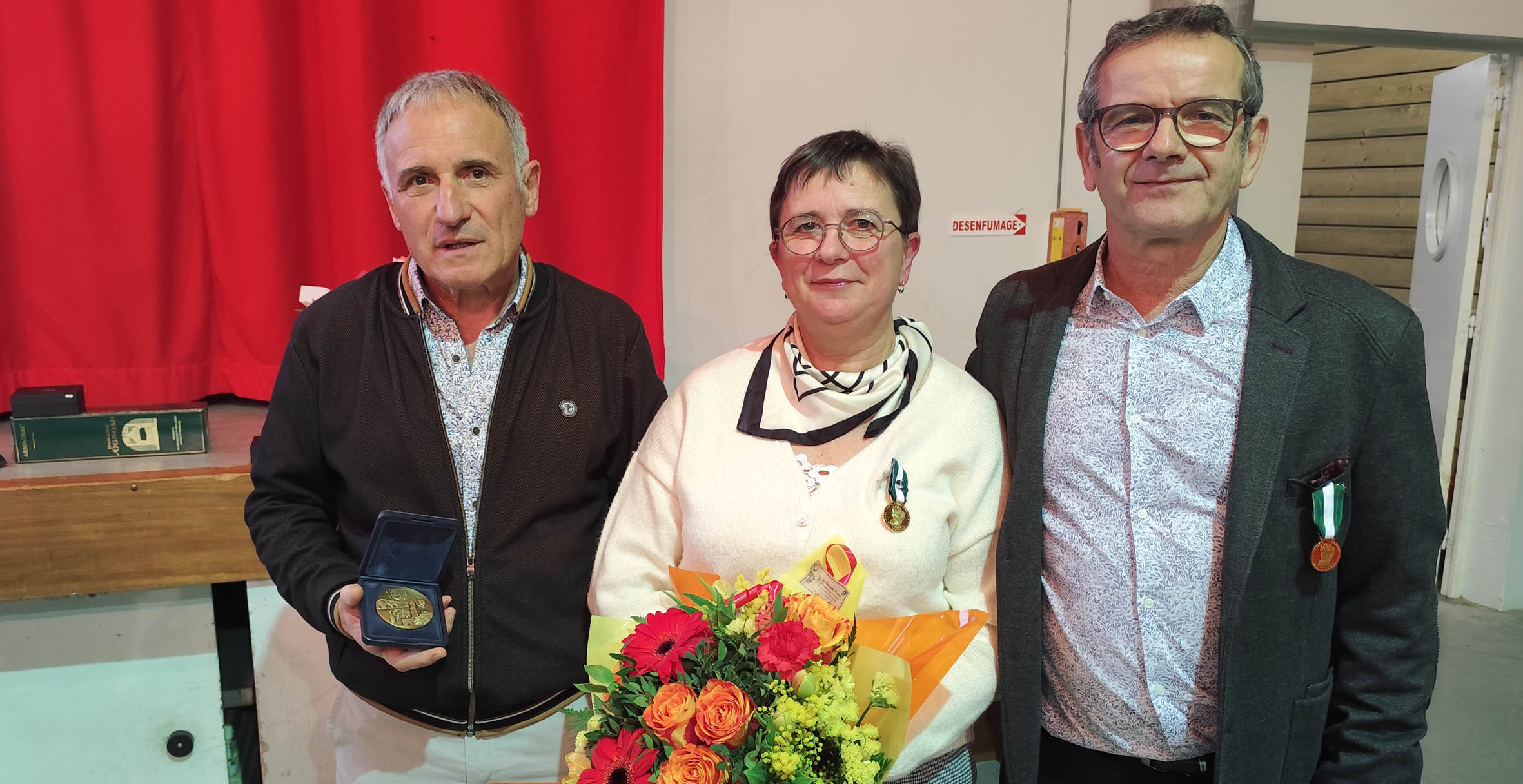 Pierre Flous a reçu la médaille de la ville de Geaune, Michèle Lataste et Gilles Lacoste celle 🏅 en or vermeil pour plus de 30 années de services